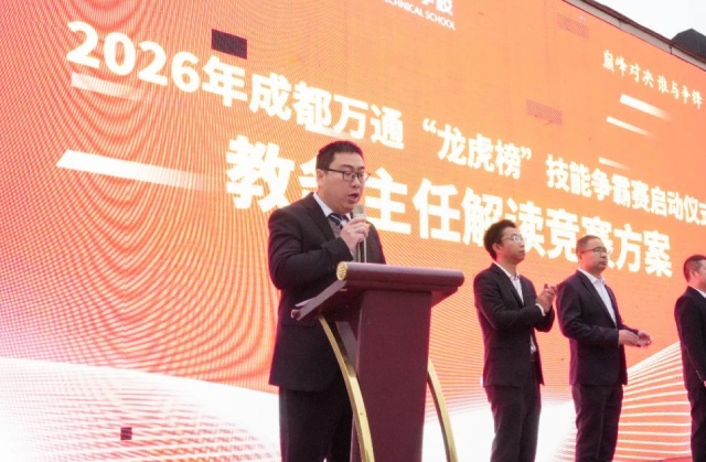 为大力弘扬工匠精神,全面检验教学实训成果,营造“比学赶超、争当技能标兵”的浓厚校园氛围,为广大学子搭建展示自我、切磋技艺、提升素养的优质平台,近日,成都万通未来高级技工学校2026年龙虎榜技能争霸赛启动仪式隆重举行。学校相关领导、全体任课教师及各专业参赛学子齐聚现场,共同见证这场技能盛宴的正式启幕,点燃全校技能比拼的火热氛围。