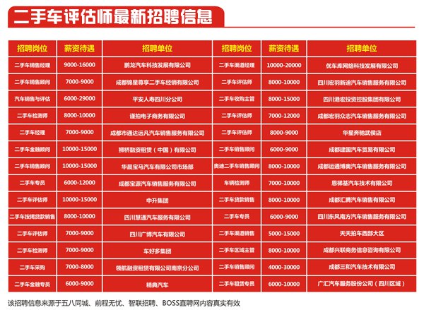 很多二手车企业开出高额薪资以吸引专业的二手车鉴定与评估人才。