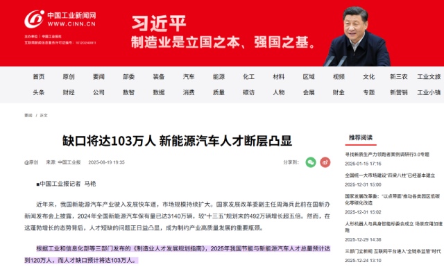 新能源汽车与高技能技工人才成国家战略