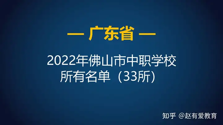 2022年广东佛山市中等职业学校(中职)学历教育具备招生资质的学校总共有33所,其中: 2022年佛山市公办中职学校名单(28所)2022年佛山市民办中职学校名单(5所)下面一起看看,详...