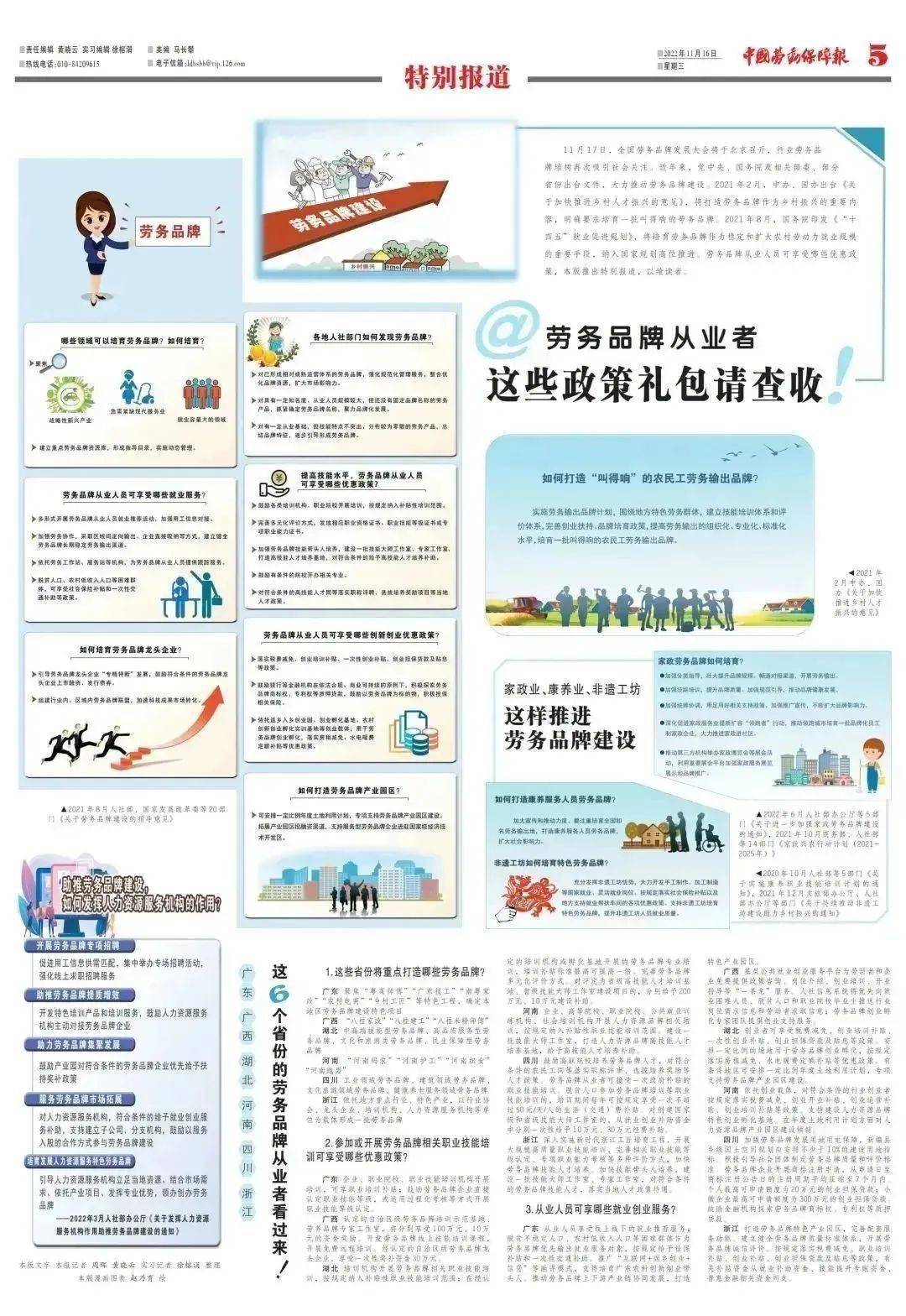 广东、广西、湖北、河南、四川、浙江 聚焦“粤菜师傅”“广东技工”“南粤家政”“农村电商”“乡村工匠”等特色工程,确定本地区劳务品牌建设特色项目。 深入实施新时代浙江工...