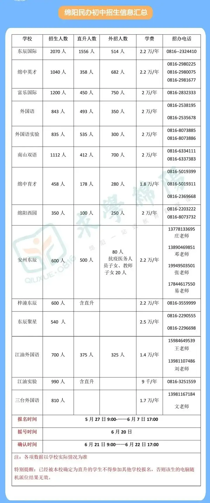 绵阳市民办学校小升初 首次启用100%摇号录取政策,5月22日起,各民办学校陆续发布了2020年招生公告,这里汇总并整理了14所民办学校招生信息供家长们查阅。到底绵阳这些学校的情况如...