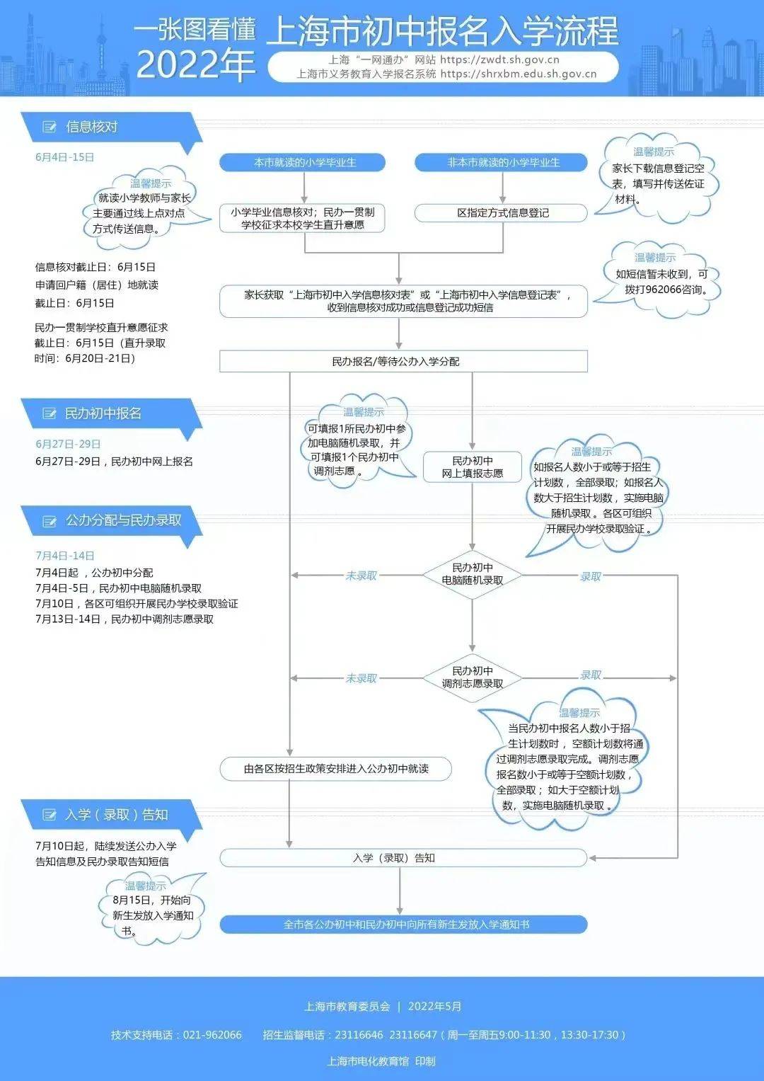 2022年民办初中招生继续实行网上报名,有意愿选择民办初中就读的学生,请家长务必仔细阅读民办初中发布的招生简章,特别是招生计划类型及其条件、收费情况等,并于6月27日-6月2...