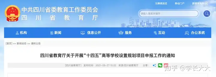 日前,四川省教育厅发出《关于开展“十四五”高等学校设置规划项目申报工作的通知》(以下简称“《通知》”),明确提到,要规划增量重点支持新增本科高校特别是职教本科、普...