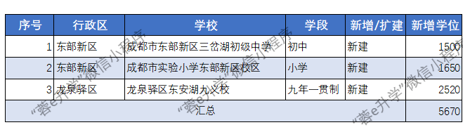 东部新区、龙泉驿区2022年新增公立学校学位5670个。成都市东部新区三岔湖初级中学(东部新区)、成都市实验小学东部新区校区(东部新区)、“蓉e升学”微信小程序 龙泉驿区东安湖...